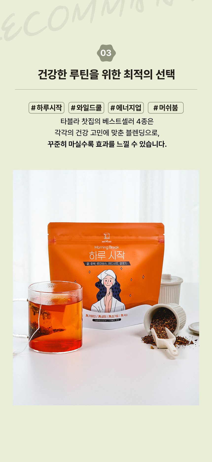4. 팥·호박·루이보스로 블렌딩한 무카페인 허브티 ‘하루시작’.